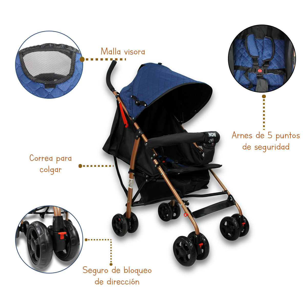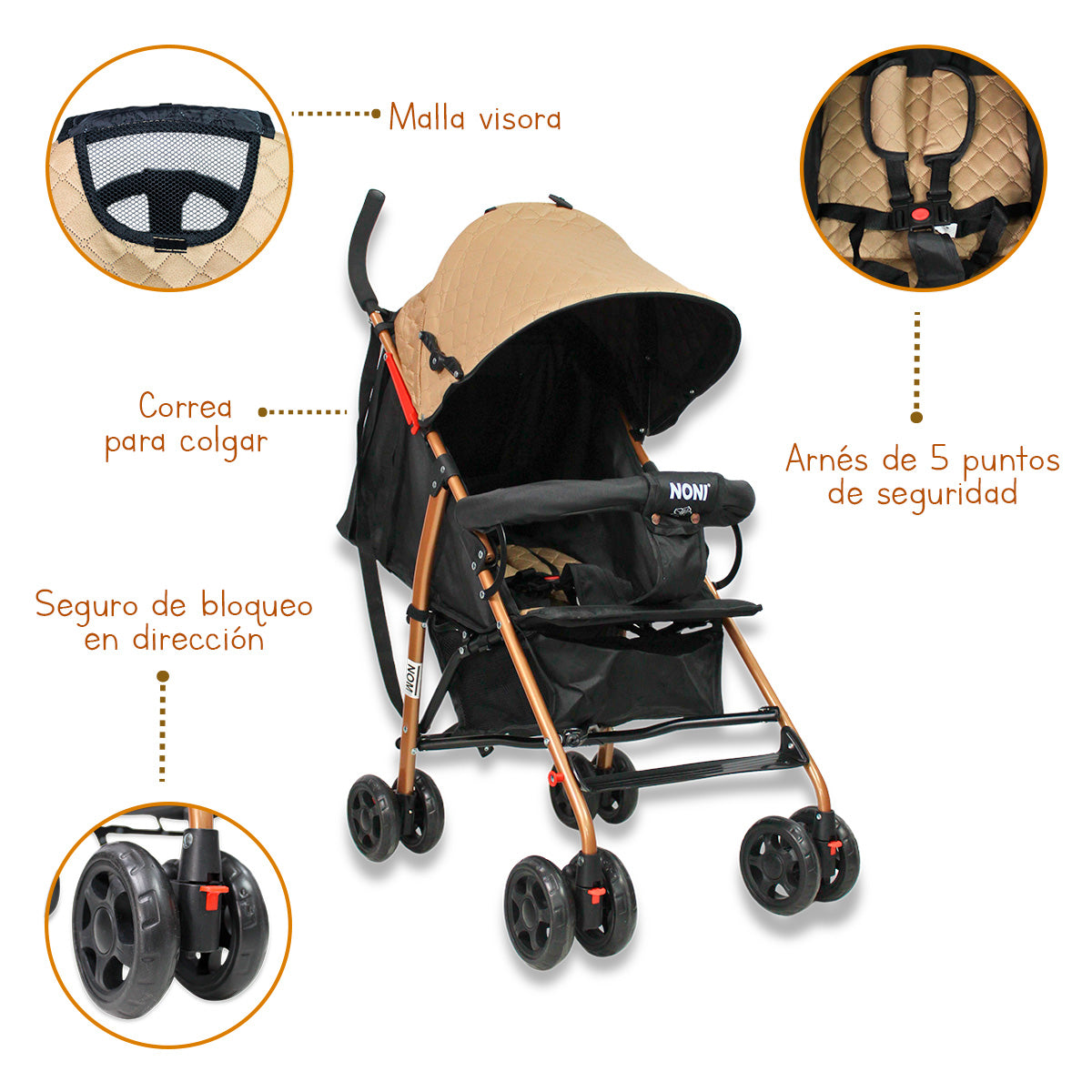 La Carriola de Bastón Reforzada Toldo Capitonado Noni Is-666 Q es la opción ideal para padres que buscan comodidad y seguridad en sus paseos. Diseñada para niños desde los 3 hasta los 36 meses, esta carriola cuenta con un sistema de arnés de 3 puntos que garantiza la seguridad de tu pequeño mientras exploran el mundo.