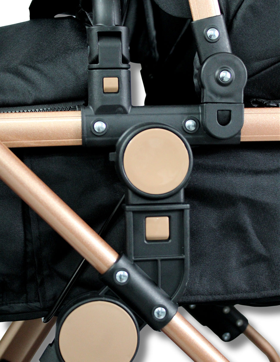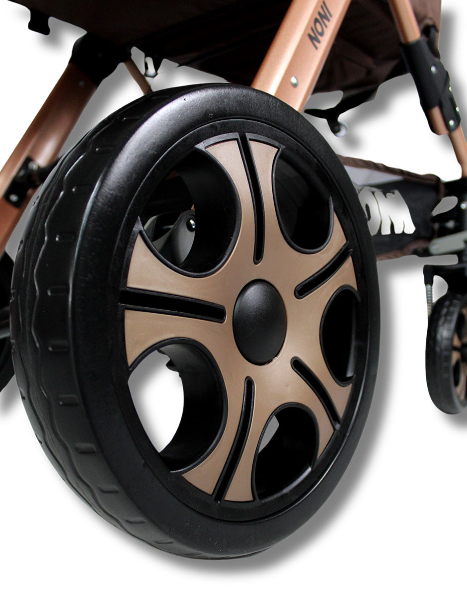 - Llanta delanteras con amortiguadores y seguro de punto fijo
