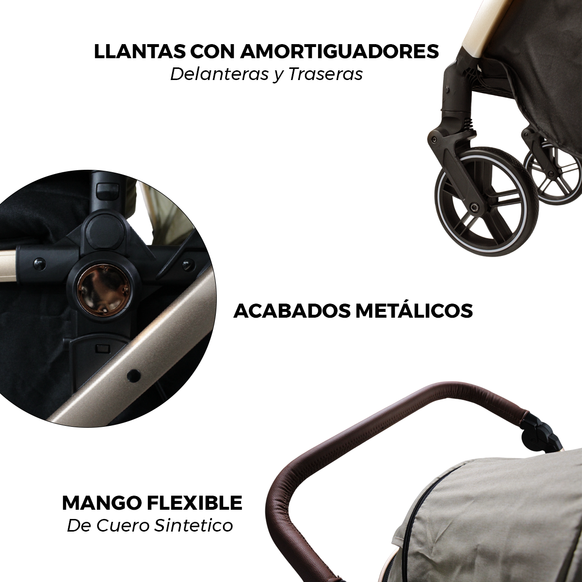 - Llanta delanteras con amortiguadores y seguro de punto fijo